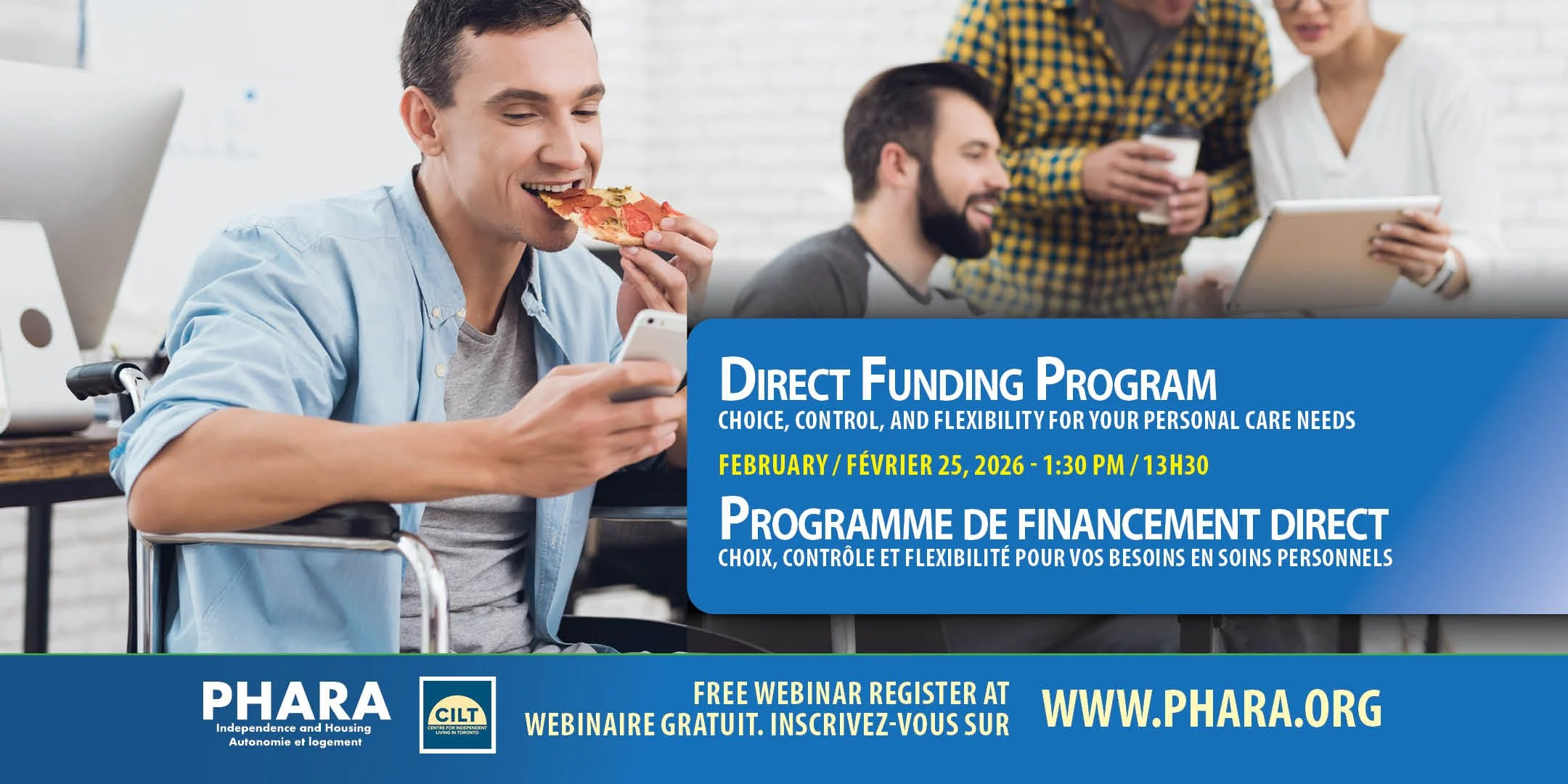 PHARA Community Services s'associe au Centre pour la vie autonome de Toronto (CILT) afin d'aider davantage de personnes handicapées de North Bay et des environs à vivre de façon autonome grâce à une série de webinaires éducatifs gratuits portant sur le Programme de financement direct de l'Ontario.
